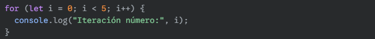 console.log("Iteración número:", i);
