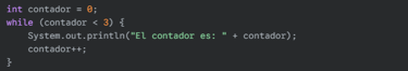 while (contador < 3) {