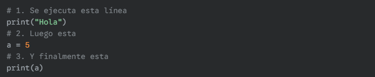 Flujo de control: Es el orden en que se ejecutan las instrucciones. Un programa rara vez se ejecuta de principio a fin de forma lineal. El flujo de control permite tomar decisiones, repetir acciones o saltar a diferentes partes del código.