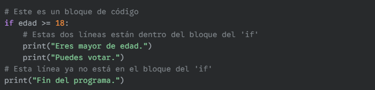 if: Si la condición es verdadera, ejecuta el bloque.