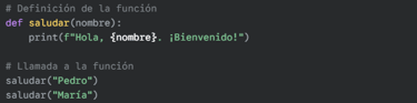 ¿Cómo se hace? Se define una función con un nombre y un bloque de código. Luego, se llama a la función por su nombre para ejecutar el bloque.