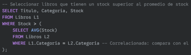 Subconsulta en la cláusula WHERE (para filtrar): Obtener los libros cuyo precio es mayor que el precio promedio de todos los libros.