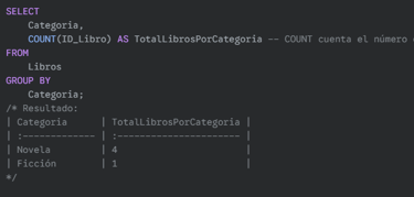 Ejemplo: Contar cuántos libros hay por cada categoría.