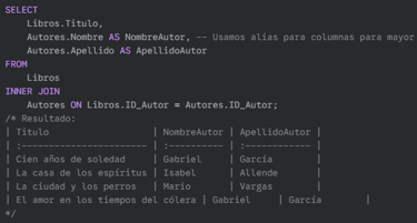 Ejemplo: Obtener los títulos de los libros junto con el nombre y apellido de su autor.