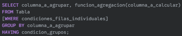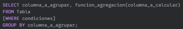 SELECT columna_a_agrupar, funcion_agregacion(columna_a_calcular)