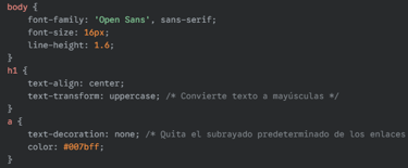 text-decoration: Líneas decorativas (ej. none, underline, overline, line-through).