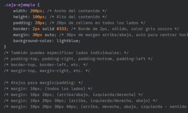 Cada elemento HTML es tratado como una "caja". Comprender el modelo de caja es fundamental para el diseño con CSS. Se compone de: