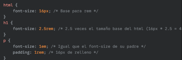 rem: Relativo al font-size del elemento raíz (<html>). Es más predecible. <!-- end list -->