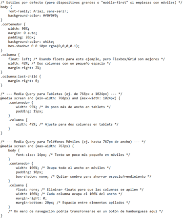 CSS Grid: Ideal para diseños de página bidimensionales (filas y columnas). Te permite definir áreas de la cuadrícula y reordenarlas fácilmente con media queries.