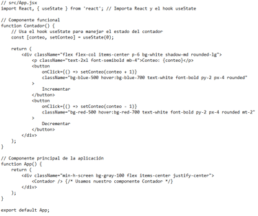 ¿Cómo se hace? React no se usa directamente en un archivo HTML simple como Bootstrap o Tailwind. Requiere un entorno de desarrollo moderno (Node.js, npm/yarn, un bundler como Webpack/Vite) para transpilar JSX (una extensión de sintaxis que permite escribir HTML dentro de JavaScript) y otros códigos modernos.