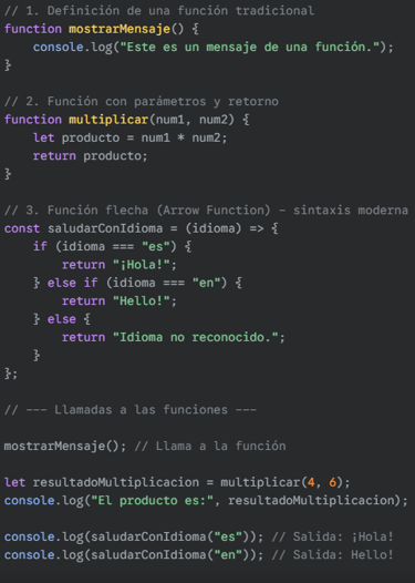 En JavaScript, las funciones se definen usando la palabra clave function o con la sintaxis de "funciones flecha" (=>).
