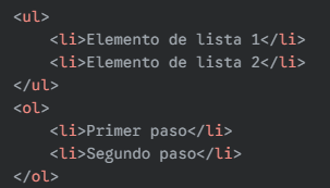 <ol> (ordered list): Para listas con un orden específico (elementos numerados).