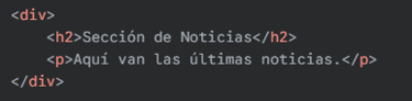 Divisiones (<div>): Un contenedor genérico para agrupar otros elementos HTML con fines de estilo o de script. No tiene significado semántico por sí mismo.