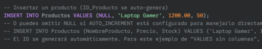 Nota: Si una columna es AUTO_INCREMENT (o SERIAL/IDENTITY en otros SGBD), a menudo puedes insertar NULL para que el sistema genere el valor automáticamente, o simplemente omitir esa columna de la lista de columnas (ver la siguiente forma).