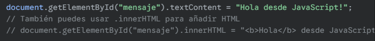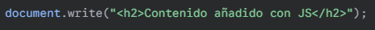 document.write(): Escribe contenido HTML directamente en el documento. No es recomendable para páginas ya cargadas, ya que puede sobrescribir el contenido existente.