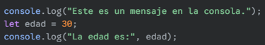 console.log(): Muestra un mensaje en la consola del navegador (accesible a través de las herramientas de desarrollador, generalmente con F12). Es una herramienta indispensable para la depuración y para ver el valor de las variables sin afectar la interfaz del usuario.
