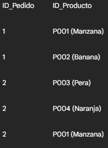 Transformación a 1NF: Necesitamos una tabla Detalles_Pedido que relacione Pedidos y Productos.