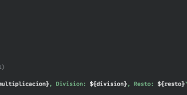 console.log(`Suma: ${suma}, Resta: ${resta}, Multiplicacion: ${multiplicacion}, Division: ${division}, Resto: ${resto}`);