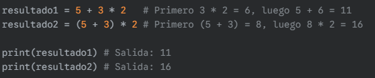 Al igual que en matemáticas, los operadores en programación tienen una precedencia que determina el orden en que se evalúan. Por ejemplo, la multiplicación y la división generalmente se evalúan antes que la suma y la resta.
