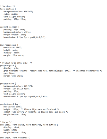 Accesibilidad: Revisa que hayas usado HTML semántico, alt text para imágenes, etiquetas de formulario adecuadas.