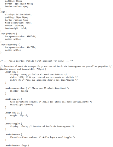 css/style.css (Fragmento con responsividad y Flexbox)
